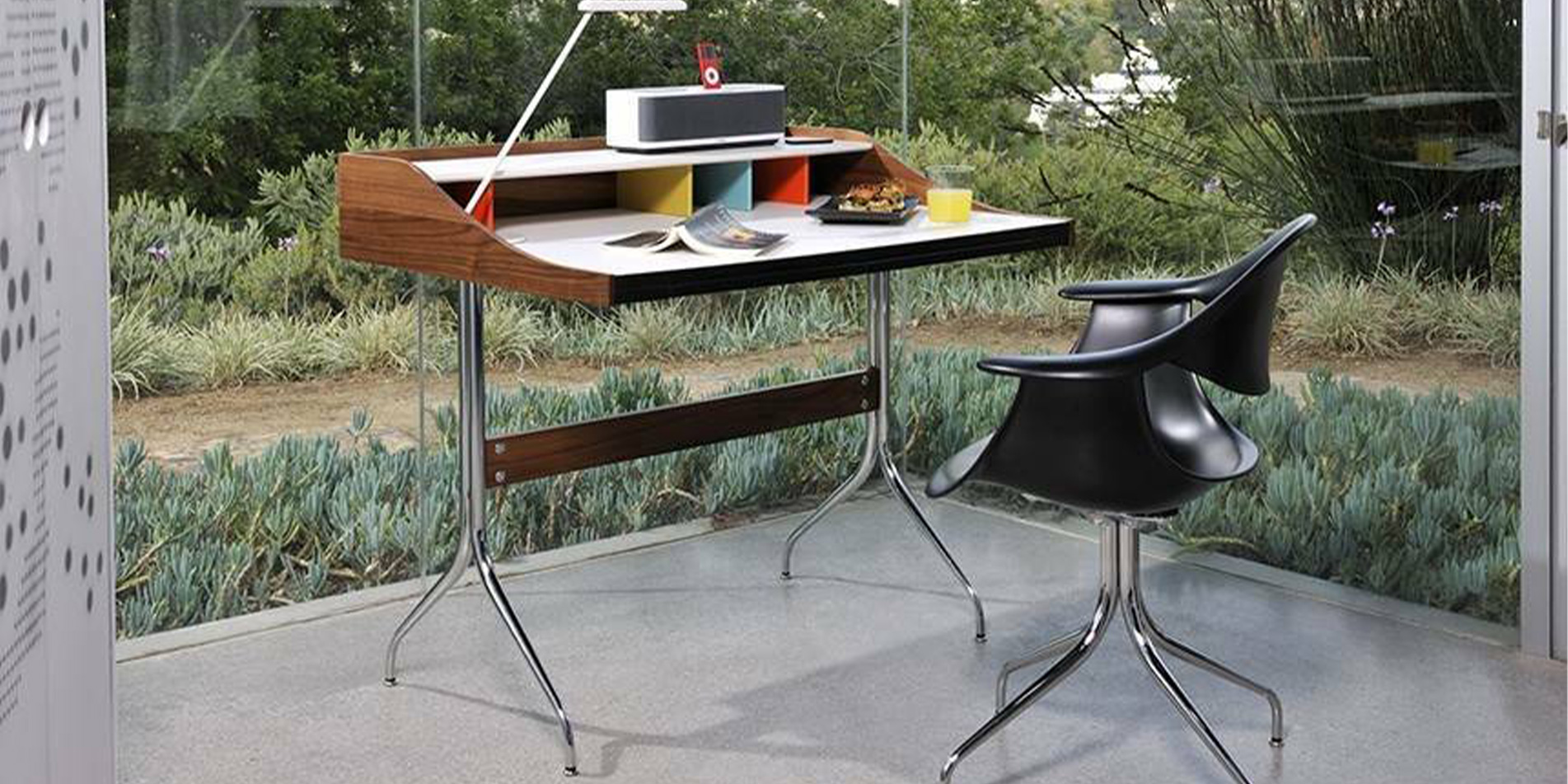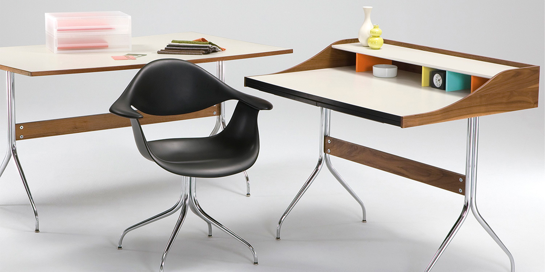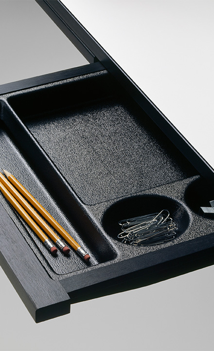특히 Desk는 상부의 다채로운 큐비홀과 서랍을 갖추어져 있으며, 케이블 관리가 용이하도록 설계되어 오늘날 노트북과 같은