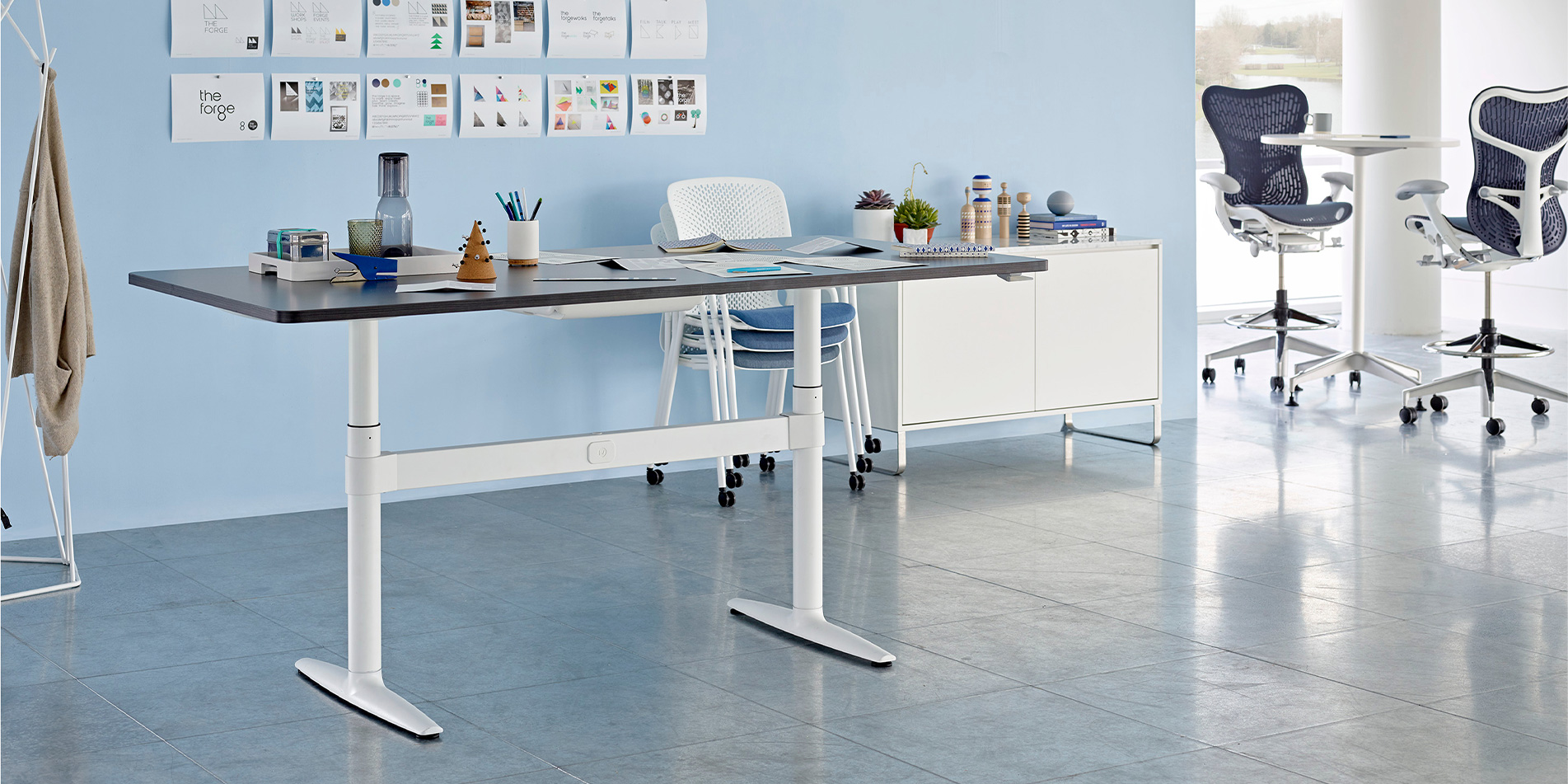 아틀라스 데스크(Atlas Desk)는 사용자에 맞추어 제약없이 높이조정이 가능할 뿐 아니라 다리 블록을 통해 케이블 및 전원장치를 깔끔하게