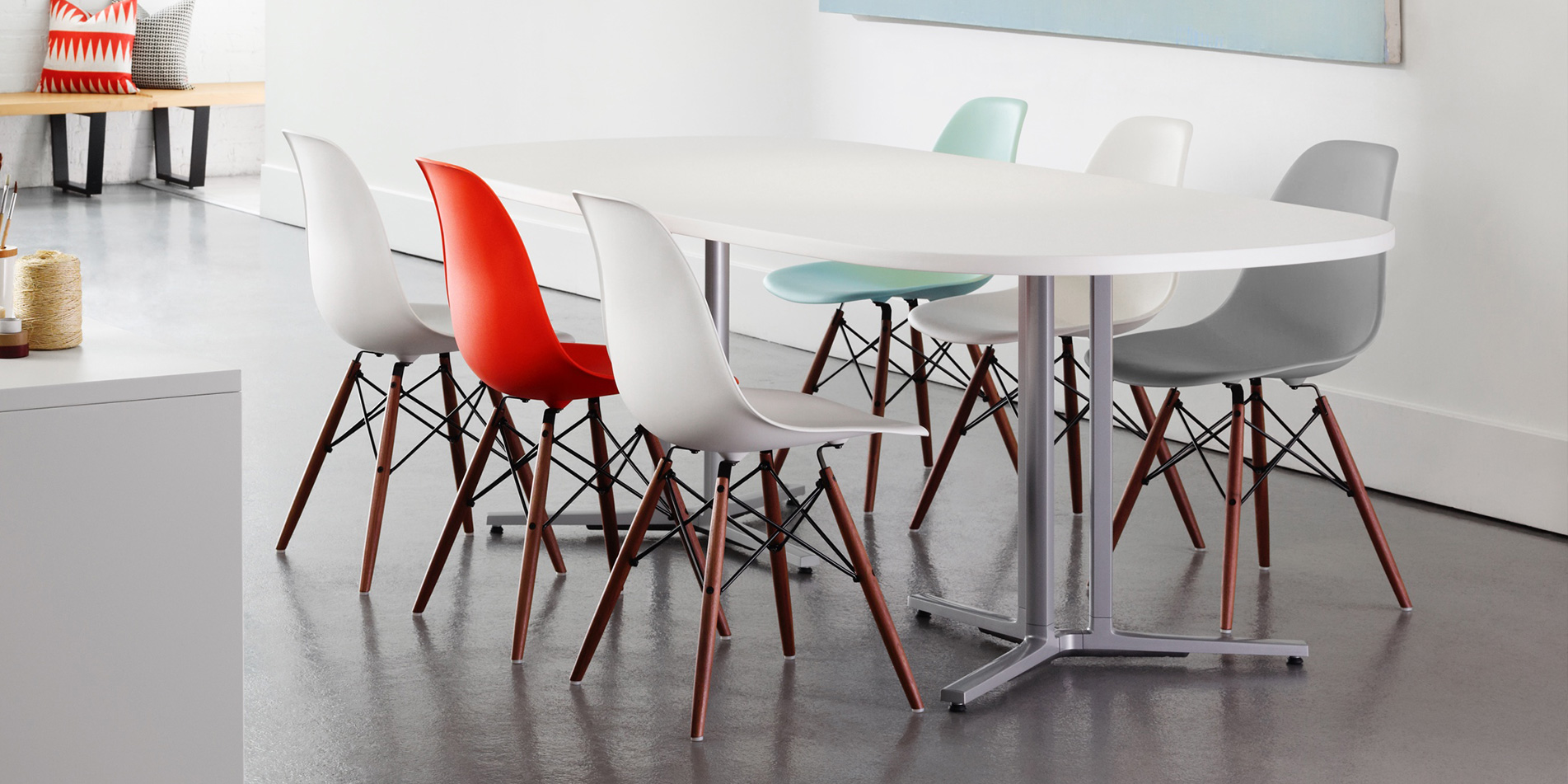 암체어로 나누어지며 Wire,Dowel,4-leg Base 등의 다양한 옵션과 컬러로 공간을 연출합니다. 다리베이스가 에펠탑을