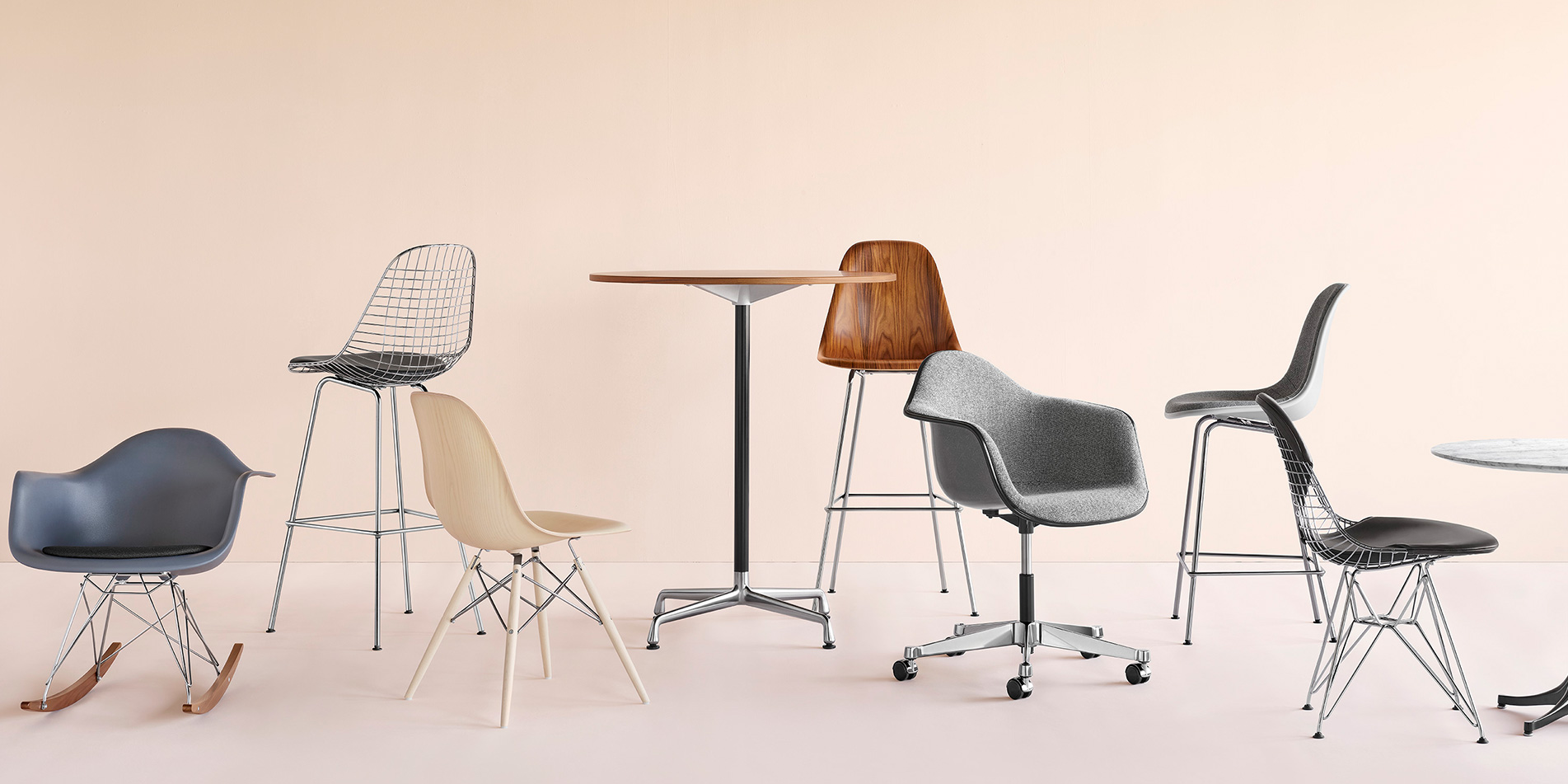 암체어로 나누어지며 Wire,Dowel,4-leg Base 등의 다양한 옵션과 컬러로 공간을 연출합니다. 다리베이스가 에펠탑을