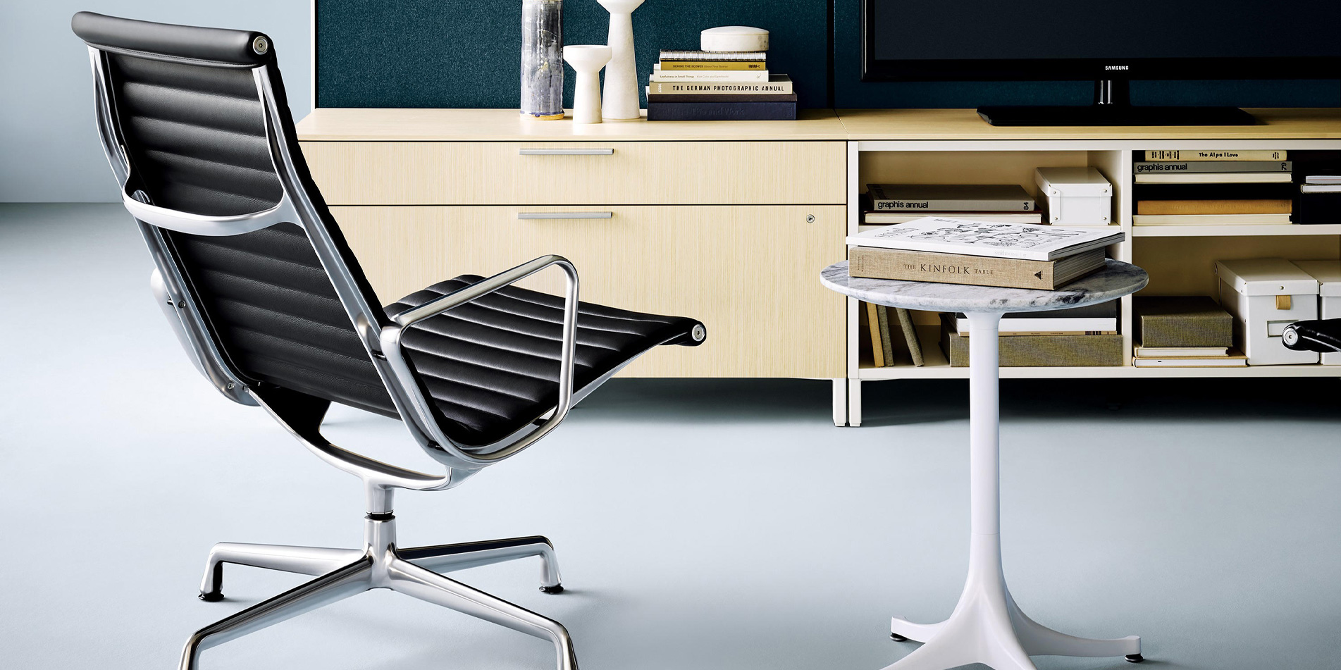 1958년 처음 소개된 Eames Aluminum Group은 21세기 공간에서도 여전히 고전적이면서 모던한 느낌을 지니고 있습니다