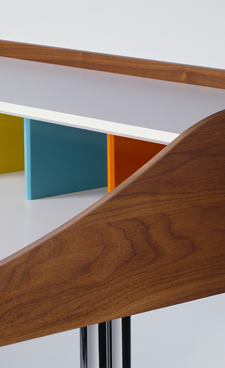 특히 Desk는 상부의 다채로운 큐비홀과 서랍을 갖추어져 있으며, 케이블 관리가 용이하도록 설계되어 오늘날 노트북과 같은