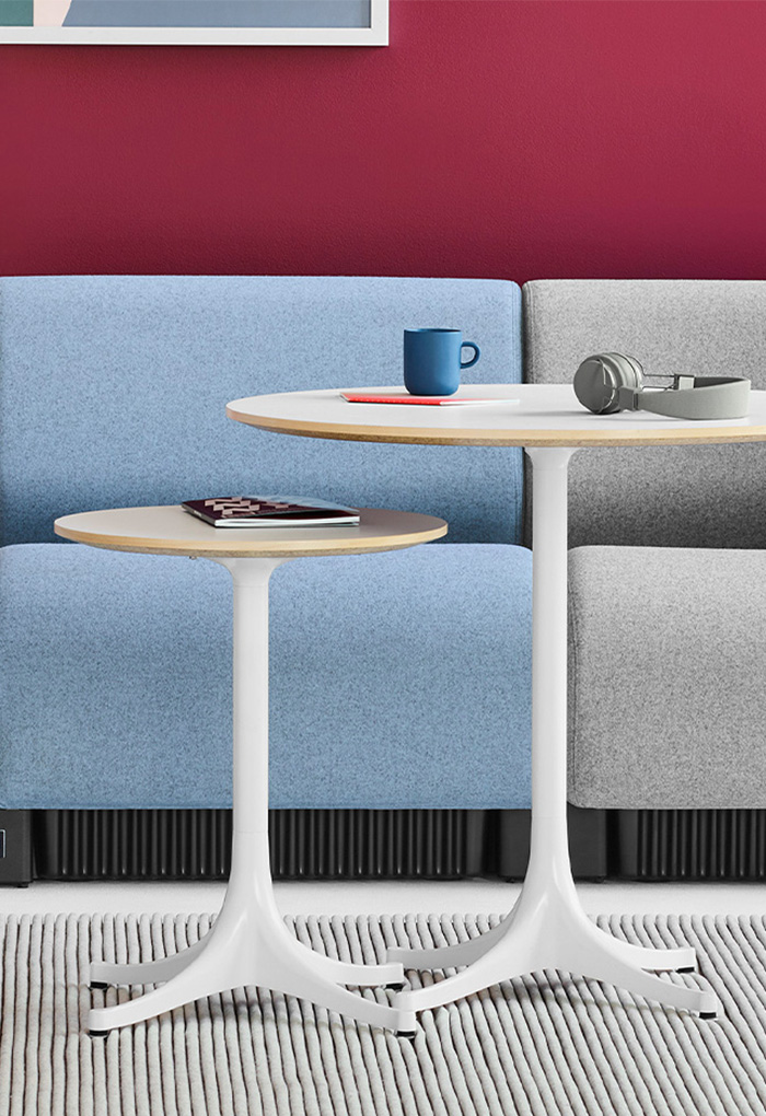 1954년 조지넬슨의 의해 하나의 베이스 조각을 기반으로 디자인 된 넬슨 페데스탈 테이블은 세가지 크기로 만들어집니다.