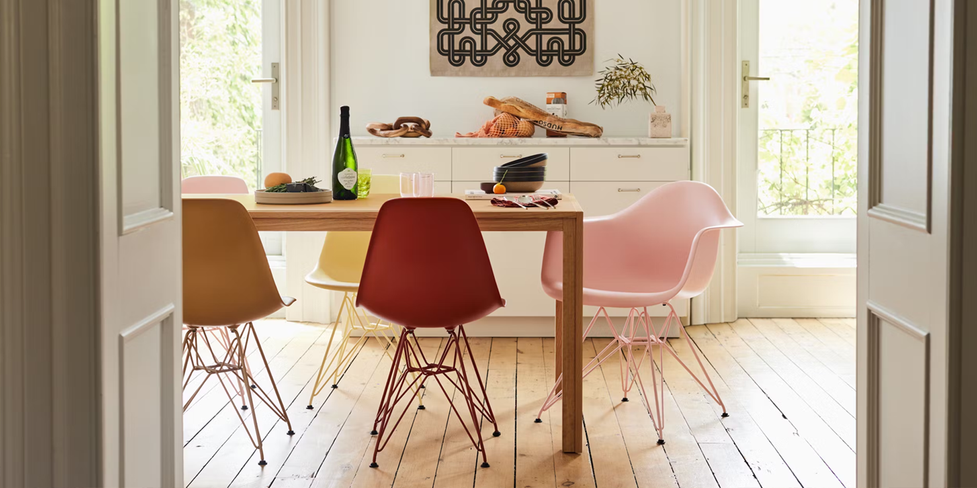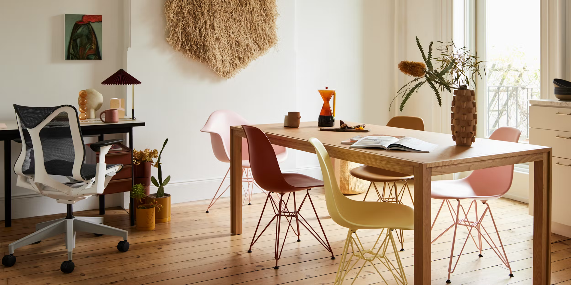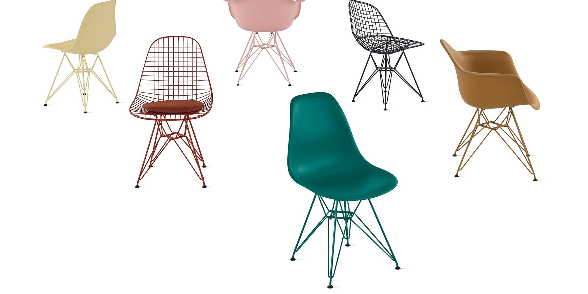 싱글이나 암체어로 나누어지며 Wire, Dowel, 4-leg Base 등의 다양한 옵션과 컬러로 공간을 연출합니다.